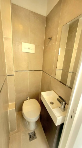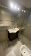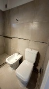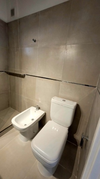 Baño completo revestido en porcelanato.