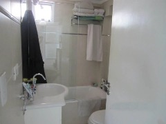 -baño con griferia FV y artefactos ROCA, bañera y mampara de vidrio