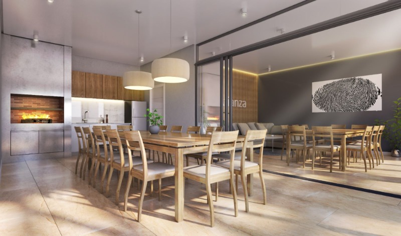 Quincho cubierto conectado a la terraza y con posibilidad de unión a la zona de coworking para mayor confort en los eventos de sus residentes.